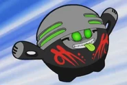 Bug-Sumerumin resembles his Promin Sumerumin but however, he is a Bugmin. Bug-Sumerumin has a grey cover, a grey face, grey hands, red markings and a black body. The inside of his cover is colored green.